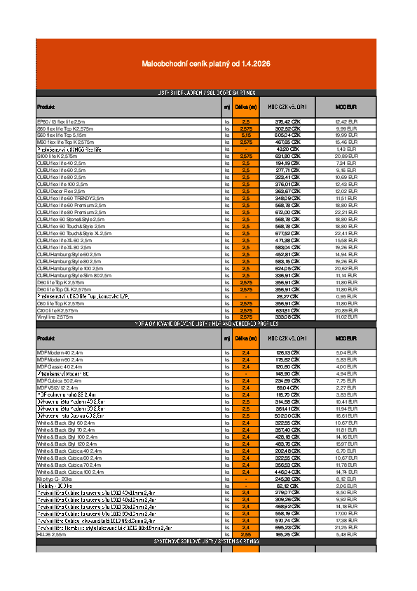 Maloobchodní ceník platný od 1.4.2026